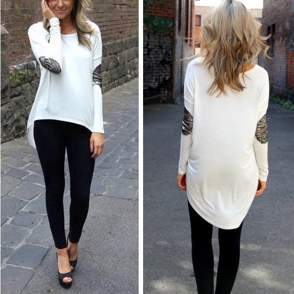 - Asimetrična casual majica sa zakrpama od šljokica