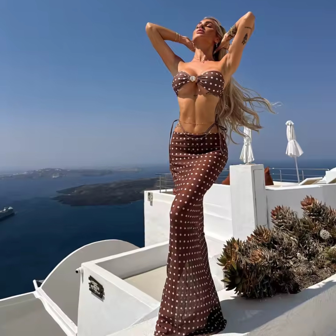 - Bandeau push up kupaći kostim na točkice + suknja za plažu