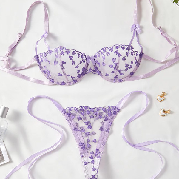 - Delikatni čipkani komplet rublja s uvezenim srcima 4 boje