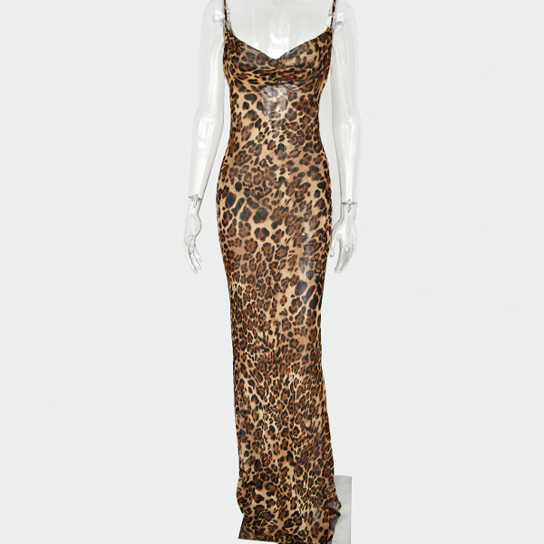 - Duga haljina leopard uzorka s vezanjem na leđima