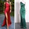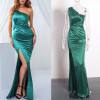 - Duga satinirana luksuzna haljina na jedno rame s naborom na struku 2 BOJE