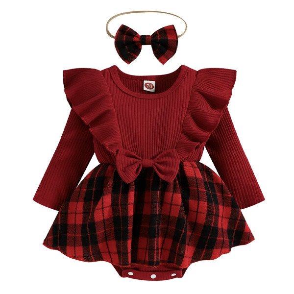 - Karirani dječji bodi s trakom za glavu 0-24mj.