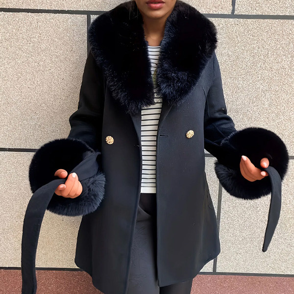- Kratki ženski vuneni kaput s krznom 5 boja