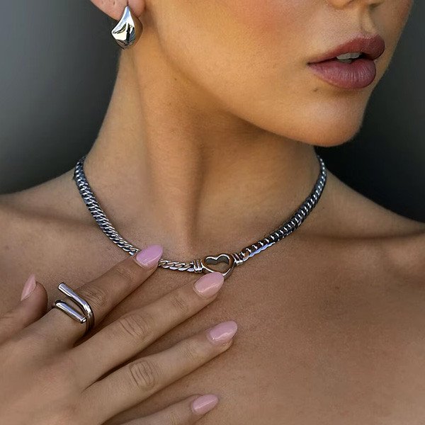 - Masivna ogrlica od nehrđajućeg čelika sa srcem 2 boje