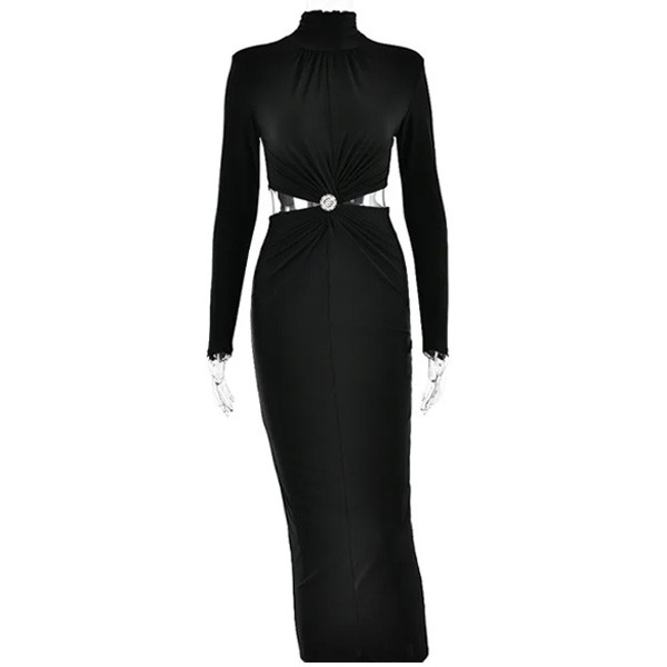 - Midi haljina povišenog ovratnika s brošem na struku 3 boje