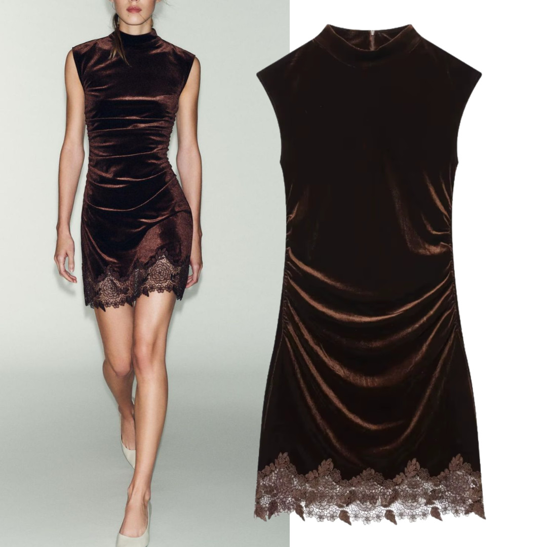 - Mini baršunasta haljina s čipkom