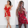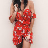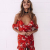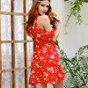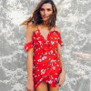 - Mini crvena cvjetna haljina otvorenih ramena