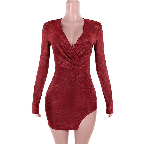 - Mini glitter haljina s prorezom na nozi 2 boje