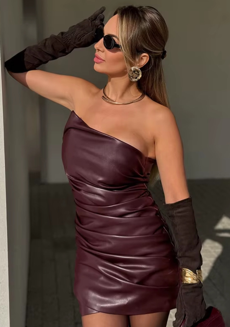 - Mini nabrana haljina kožnog izgleda 2 boje