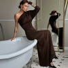 Duga nabrana Diana haljina na jedno rame 2 boje