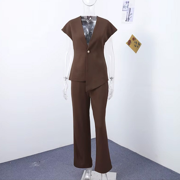 Komplet poslovne hlače + asimetrični prsluk 5 boja