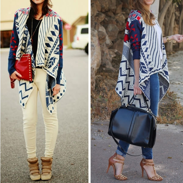 - Plavi asimetrični kardigan geometrijskog printa